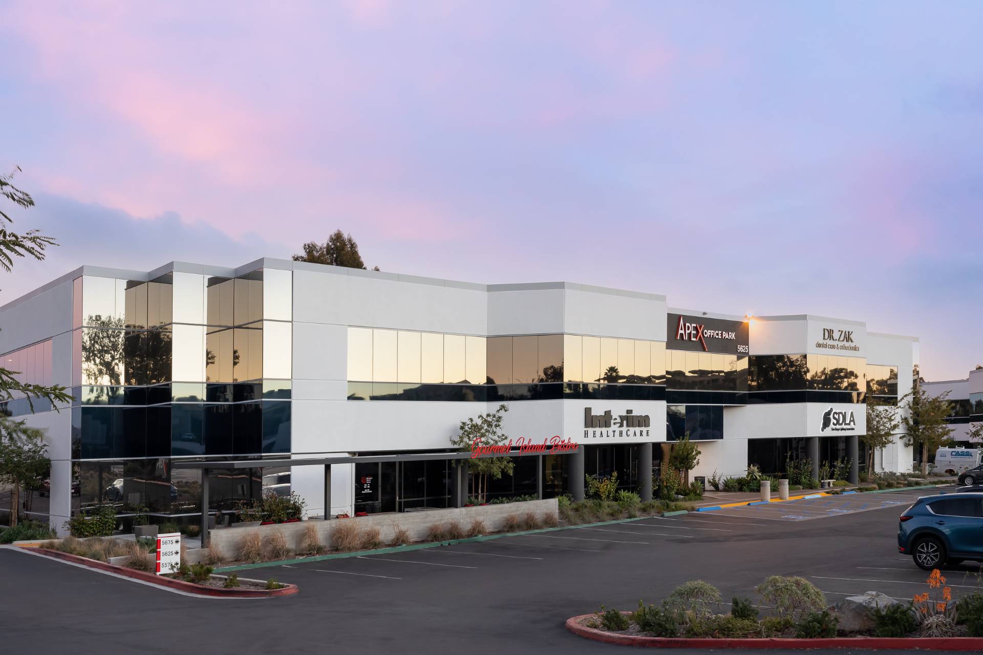 Apex is a three-building office campus totaling over 125,000 square feet in the Kearny Mesa submarket of San Diego. The project consists of two, 2-story and one, 3-story office buildings. The project has undergone a full renovation including exterior enhancements, hardscaping and landscaping, lobby upgrades, restroom and corridor remodels, and new interior finishes and décor. Located in the heart of Central San Diego with easy access to the region’s interstate system, Apex is in close proximity to an abundance of nearby retail and commercial amenities as well as the surrounding residential communities.